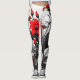 Red Flower On Black White Plant Leggings