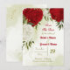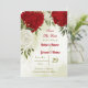 Beautiful save the date card featuring red and white flowers and green leaves