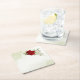 red flowers green leaves wedding square paper coaster