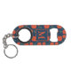 Red Flowers Pattern Dark Blue Monogram Keychain Bottle Opener