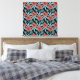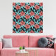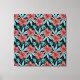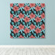 Red flowers tropical seamless pattern &blue leaves canvas print
