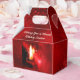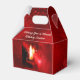 The reflected flame of a single red candle glows brightly on the front of this favour box, covered in a look of textured foil in a deep, deep red. "Wishing You A Blessed Holiday Season" is in a pale gold script font. The photo of the red candle, its flame and reflected flame and star-filled black and red muzzy background blend into a background of deep red. The inscription, "Wishing You A Blessed Holiday Season" can be edited easily to anything you like. Just hit "Personalize" and get started.