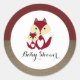 Red Fox Burlap Baby Shower Classic Round Sticker