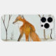 A tiny watercolor painting of a red fox out on a hunt in the snowscape of winter adorns this phone case!