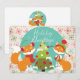 Red Fox Christmas holiday greeting invitation card features a background of vintage off white with lots of pretty colourful snowflakes, an aqua circular with a decorated Christmas tree, and two cute red foxes in ear muffs, scarves, and winter hat with text that reads Holiday Greetings! The back features a circular of aqua with the same red foxes and an area you can add your text message and name(s). We have matching postage, stickers, return address labels, and envelopes.