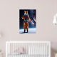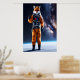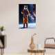 Cute and adorable red fox in a space suit standing on a alien planet with space in the background. This is a AI generated art.