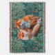 RED FOXES AMONG GREENERY, FOLIAGE AND FLOWERS THROW BLANKET
