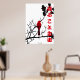 Bird on a black tree with Japanese "Free to fly" quote.