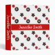 This pretty binder features a white background on the front and back with black and red flowers. A red stripe runs through the centre of the front and the spine is red. There is customizable text on the front and spine.
