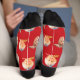 Funny personalized red 2 face photo crew socks for dads. To use a cutout of your son or daughter's face like in the example, the background must be transparent and the file format a png. You can download any mobile or computer app, or use the program named Canva or Photoshop.