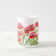 Original fine art design of colourful red garden poppies by artist Carolyn McFann of Two Purring Cats Studio printed on a quality bone china mug for floral art fans.
