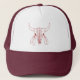 (line) Red Ghost Dance Buffalo foam trucker hats are for drivers, Native Americans, westerners, those interested in the Early West or Old West, history buffs, those interested in shamanic rituals, animal skull collectors, and those who admire the spirit of the American buffalo. Red Ghost Dance Buffalo is Steamy Raimon original art.