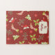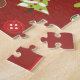 A puzzle meant to bring great delight, this Red Gingerbread Man Glee puzzle features a red background adorned with gingerbread men, red and white Santa Stockings, Christmas trees and other decor. Customize your name using the template.