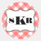 Red gingham 3 monogram letter country style classic round sticker
