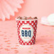 Celebrate the summer with a BBQ party. Impress your guests with this BBQ paper cups featuring a light orange tint centre bordered by a red gingham pattern.