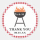 Red and white gingham pattern with flaming BBQ thank you favour sticker. Personalize text font style, colour, and size.