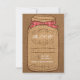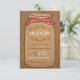 This darling wedding invitation set features a hand-drawn mason jar with a red gingham bow on a burlap background -- perfect for vintage and rustic themed weddings!