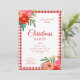 Red Gingham Floral Christmas Party Invitation