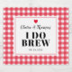 The perfect custom decor accent for an I Do BBQ engagement party, couple's shower or rehearsal dinner this beer bottle label has the couple's names and wedding date plus a fun play on words, "I Do Brew" all against a classic outdoor motif of red gingham, like a picnic blanket.