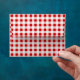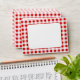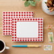 These cute invitations and coordinating items are printed with a red gingham pattern. Click "customize it" to change the white background to your favourite colour.
