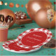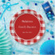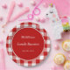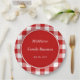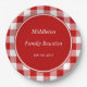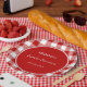 Large red circle in the centre of the plate over a red and white gingham pattern. Customize the text in the centre of the plate for your own event or remove the text for a classic look.