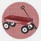 Red gingham with wagon classic round sticker
