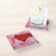 Lovely and romantic illustration featuring a red glass heart on a bed of white-pink rose petals.