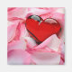 Lovely and romantic illustration featuring a red glass heart on a bed of white-pink rose petals.