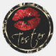 Red Glitter Lips on Black & Light Gold Marble Classic Round Sticker