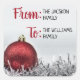 Add a festive touch to your Christmas presents with these elegant square stickers present an original photograph of a red glittery (faux glitter) Christmas ball with a silver garland.