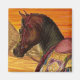 Un fier étalon arabe en costume natif profite des derniers rayons de lumière, le tout dans la magie du coucher du soleil... De "Red & Gold", la peinture acrylique originale de Morgane. Parfait pour tous les amateurs de chevaux.
