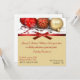 Beautiful holiday party invitation, with a photograph of red and gold Christmas ball ornaments at the top of the invitations. A red satin looking ribbon and bow as a border between the top and the pale golden coloured text area. A Customize the text to suit your needs.