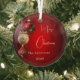 A red gradient background. Decorated with red and gold baubles. Personalize and add your name, year. Text: Merry Christmas