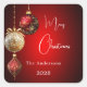 For a Christmas party favours or gift wrapping. A red uneven coloured background. Decorated with red and gold baubles. Personalize and add your name, year. Text: Merry Christmas