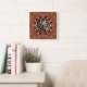 Custom Art Wall Clock : Unique design in earthy reds and gold. This unique alternative design is inspired by Arabesque and Baroque style fusion with the ever beautiful Arabic calligraphy in the center, for daily Muslim blessings at home or office .