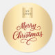 A faux gold looking background, red text. Merry Christmas is written with a hand-lettered style font. Personalize and add your business logo.