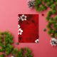 This elegant floral Chinese wedding invitation features a real gold foil line art flowers on a red background. 金箔婚礼请柬