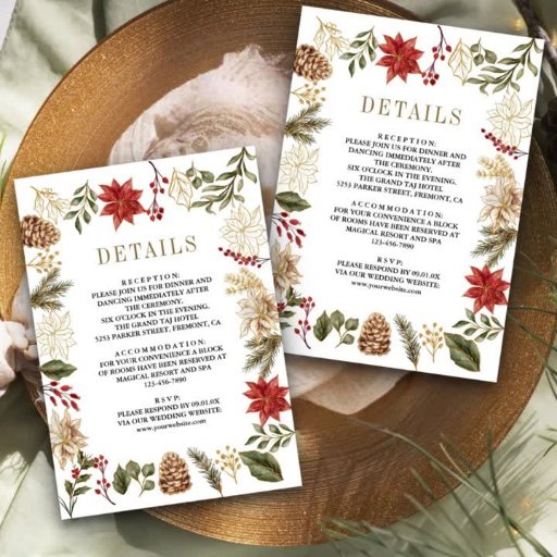 Amaze your guests with this elegant wedding invite featuring beautiful red poinsettia flowers and rustic pine leaves with QR Code for online RSVP. Simply add your event details on this easy-to-use template and adorn this card with your favourite photos to make it a one-of-a-kind invitation.