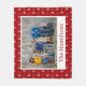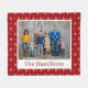 Red and gold Christmas tree pattern family banket personalized with a photo and a name.