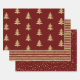 Red Gold Christmas Tree Stripes Sparkle Wrapping Paper Sheet