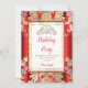 RED Gold Damask Grey Tiara Birthday Party Invitation