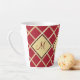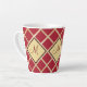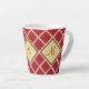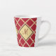 Red Gold Diamond Geometric Pattern Monogram Latte Mug