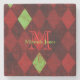 Red Gold Diamond Pattern Monogram Stone Coaster