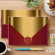 Red and gold invitation and announcement size envelope. Choose from red or gold interior - both are included and simply make your selection as you customize for your order.