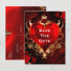 Red & Gold Gothic Love Heart Wedding Save the Date Announcement Postcard
