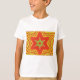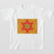 Surrounding Area: The area surrounding the red star is adorned with intricate patterns in shades of golden yellow and orange. These patterns exhibit radial symmetry, radiating outward from the centre, creating a dynamic visual flow. Hints of light blue or green enrich the details, adding depth and complexity.