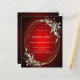 A red gradient background. An oval faux gold frame decorated with sage green greenery. Personalize and add the details. White text.