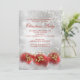 Christmas Holiday Party Invitation. Elegant gold & red holly leaf baubles with gold sparkle glitter on a silver snowflake background. Please Note: All flat images!