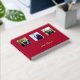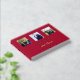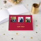 A red background, gold foil text. Personalize and add 3 photos, your name, class of, and school name.