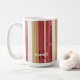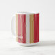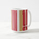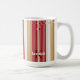 Add a chic and cheerful flair to your Christmas celebrations with this stunning pinstriped pattern. Featuring thin, vertical stripes that vary in width and spacing to create a sophisticated Christmas design. In traditional red, gold, and white, this coffee mug design brings a festive and elegant look. The vibrant red stripes capture the joyful spirit of the season, while the shimmering gold adds a luxurious touch that has a timeless appeal. Personalize with your monogram and name using the provided template. Search ID1009 to see other products and patterns in this colour scheme.